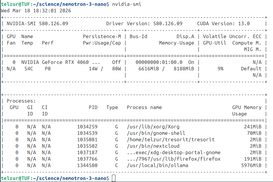telzur@TUF:~/science/nemotron-3-nano$ ollama ps